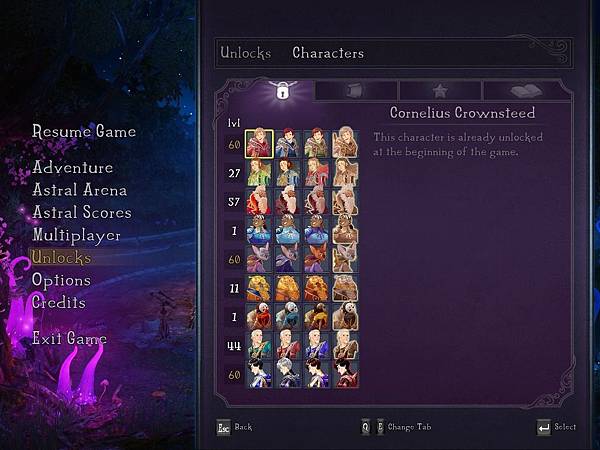之後我才知道遊戲的世界觀跟該公司主打的《三位一體》系列是共構。我喜歡這種設定,因為對人物產生感情後,通常會比較喜歡有熟悉角色存在的世界,而不是又被投入到另一個陌生世界重新開始。九位角色裡有七位學生,第八位阿瑪迪斯比較像校友,至於第九位瑟流士.瑟海伍德王子是隱藏角色,一個被關在地牢裡的資優生。阿瑪迪斯是本傳《三位一體》的主角之一,而瑟流士則是系列作第四彈的重要角色,因此《九張羊皮紙》我當成是外傳,外傳故事就發生在阿瑪迪斯唸的占星魔法學院。